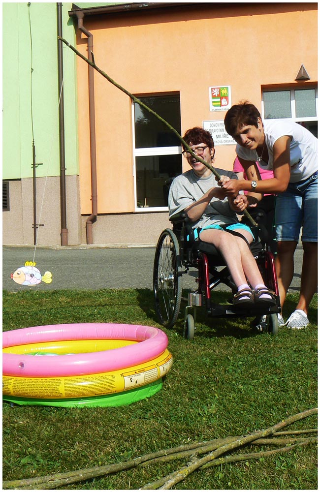 Do netradičních soutěží se zapojila většina obyvatel Domova Milíře, lovily se ryby, vybíraly brambory, házely gumovky, hledal se nejlepší chodníkový malíř. Po obědě navštívili Domov Milíře příslušníci Celní správy Plzeň. Velmi atraktivní bylo pro všechny zúčastněné seznámení se s činností Celní správy, uchvátila nás zejména spolupráce s jejich čtyřnohými pomocníky. Nejvíce jsme obdivovali, jak služební psi vyhledávali omamné látky a nenechali se zmást žádnou nástrahou, kterou jsme jim nachystali.