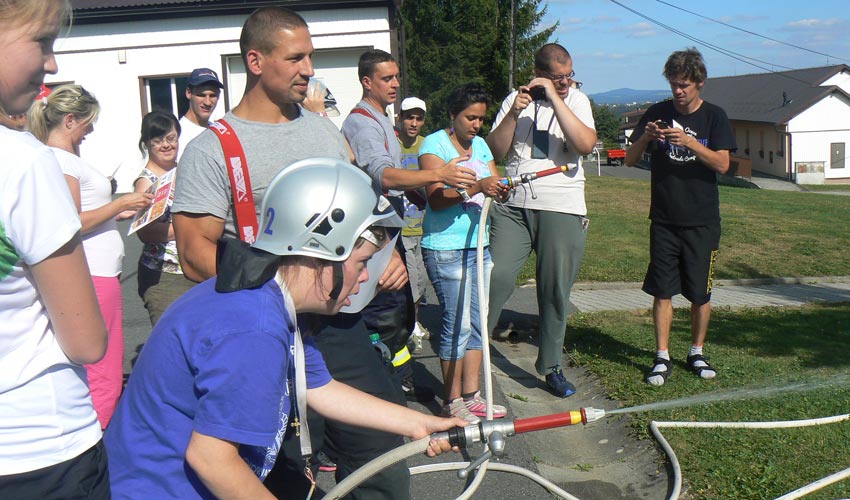 Páni celníci doplnili ukázky poutavým vyprávěním o své práci a ukázali nám také výstroj a vybavení, které při službě používají. Svou práci nám přišli představit také členové Hasičského záchranného sboru v Tachově, přijeli nám ukázat svou techniku a výstroj. Tachovští profesionální hasiči s naším Domovem spolupracují již delší dobu, vždy si připraví pro nás něco nového - tentokrát to byl kvíz, jehož správným zodpovězením bylo možno získat průkaz hasiče, který držitele opravňoval vyzkoušet si hašení požáru hadicí. S ohledem k teplému počasí jsme hasili nejen imaginární oheň, ale také jsme se příjemně ochladili. Zábavné odpoledne jsme pak završili diskotékou, kterou pro klienty připravil pan Pavel Novohradský. Všichni zpívali, tančili, výborně se bavili, z celého dne si odnesli spoustu zajímavých zážitků.