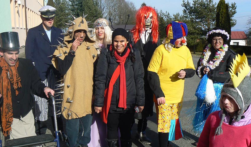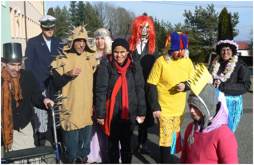 Také uživatelé služeb našeho zařízení se velmi rádi zapojili do této velmi příjemné a zábavné aktivity. Příprava byla poměrně náročná - kostýmy jsme chystali několik týdnů dopředu. Průvod začal u nás v našem Domově – čekali na nás strašidla, šaškové, kuchaři i zvířátka, my jsme všechny řádně pohostili a připojili se k průvodu s nevěstou a ženichem, námořníkem, smrtkou a dalšími.