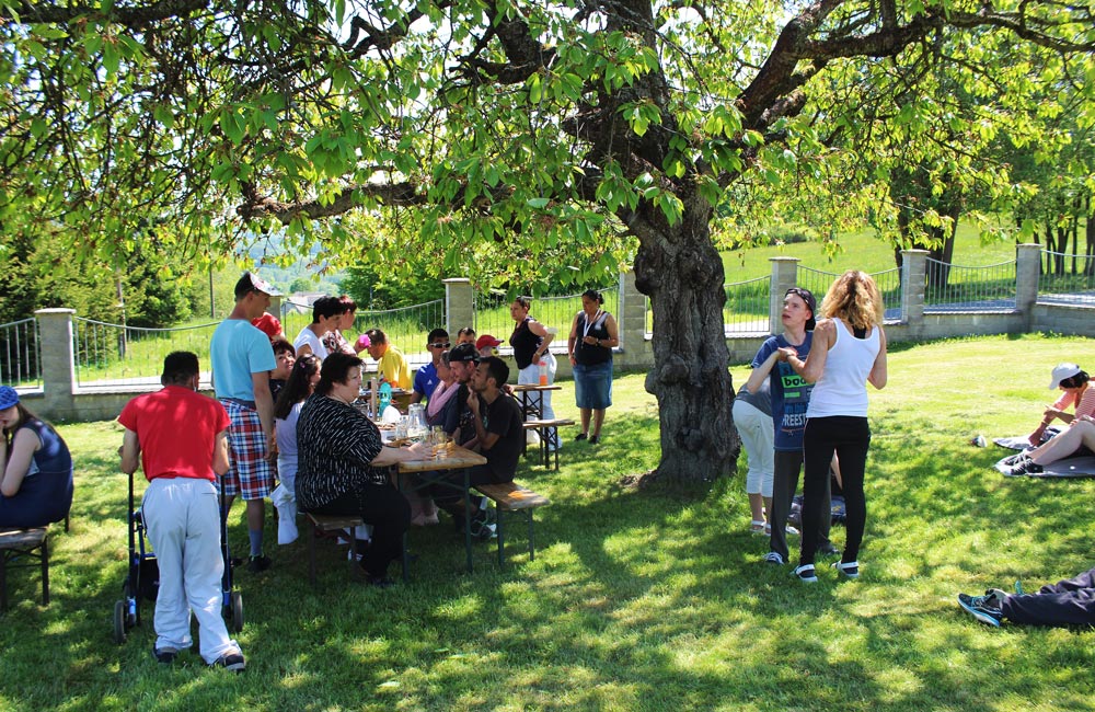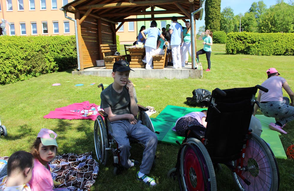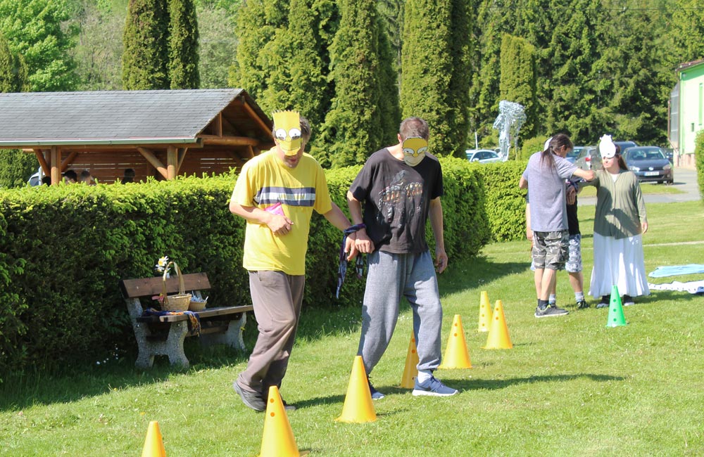 Pro uživatele byl připraven pestrý program, převážně sportovně laděný. Kamarádi úkoly zdolávali společně, ať už to bylo navlékání korálků, překážková dráha, hod míčem do koše nebo tanec s balonkem mezi tančícím párem, který neměl upadnout a nejvíce si všichni užili vzájemné krmení koláči naslepo. Nechyběla diskotéka, bublifuková šou a spousta dobrot. Odpoledne probíhala volná zábava: tanec, pojídání dobrot, opékaní klobás. Prostě vše proběhlo tak jak to mají naši klienti rádi. Naše poděkování patří Jednotě Tachov a Okresní správě sociálního zabezpečení Tachov za věcné dary pro uživatele a všem zaměstnancům, kteří se podíleli na realizaci a průběhu celé akce.