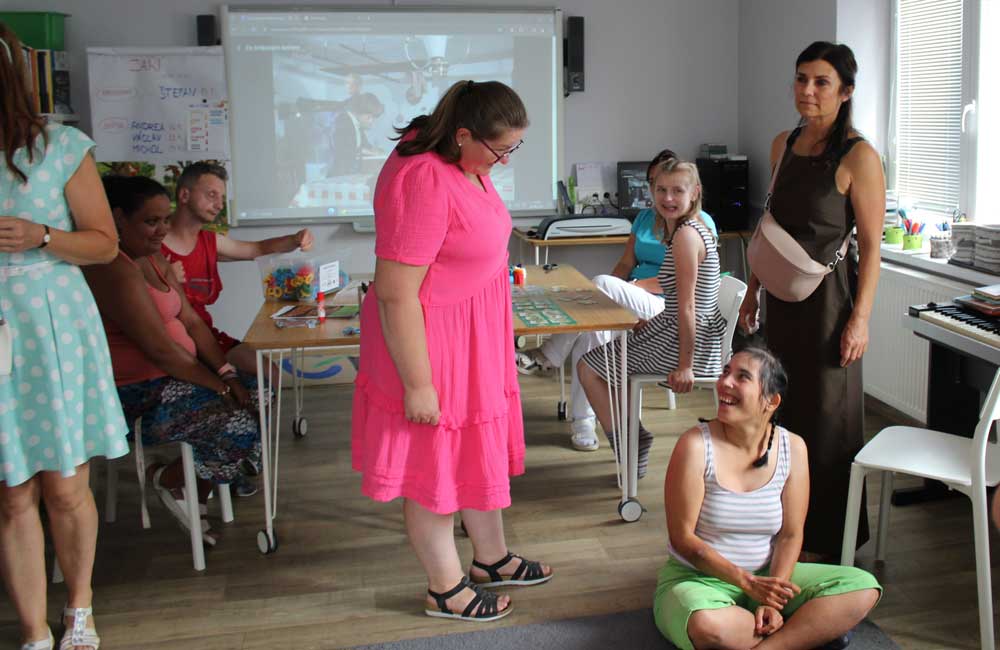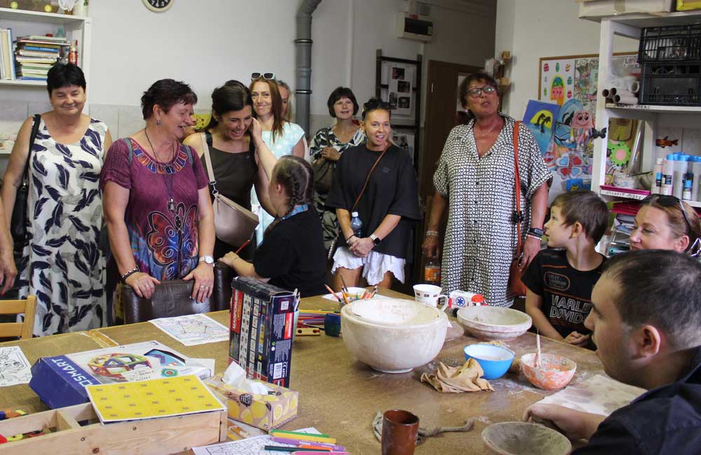 Představili jsme našim hostům práci zaměstnanců Domova Milíře. Provedli je vnitřními i venkovními prostory, které klienti Domova mohou užívat. Nahlédli jsme do prostor k bydlení, k trávení volného času. Podívali jsme se do jídelny, návštěvu, jsme pozvali do denních místností našich klientů, které vypadají jako obývací pokoje. Ukázali jsme snoozelen multismyslovou místnost určenou k relaxaci a nabuzení smyslů. Nevynechali jsme ani keramickou dílnu, která velmi zaujala naši návštěvu, líbily se jim nejen prostory, ale i výrobky, které zde vznikají. Prošli jsme i venkovní areál, kde jsme pyšní na naše nové hřiště. Prohlédli jsme si zahrádku, kde klienti pěstují převážně zeleninu a bylinky. Naší snahou bylo ukázat především aktivizační činnosti, které při práci s klienty využíváme.